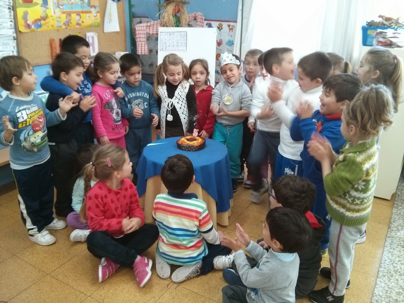 No podíamos dejar de celebrar el día especial de Sergio con las fotos que hacemos a todos los "cumpleañeros" de la clase. La seño faltó el 17 de enero y, a pesar de todo, Sergio celebró su cumple con un riquísimo bizcocho que hizo su mamá. Pero las fotos... Aquí están, Sergio. y ¿A que has salido guapísimo? Incluso has ido escenificando la letra de la canción que siempre cantamos. Te volvemos a decir desde aquí : ¡¡¡Muchas felicidades en tu quinto aniversario!!!